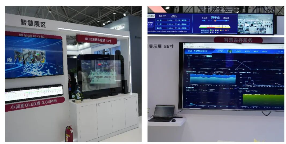 该展区集中展示聊车城(中国)智能在核心技术领域的研发突破,其中55 英寸 OLED 透明车窗屏、0.4mm 小间距 OLED 屏、弓网智能分析系统三大产品,彰显其在高端显示与智能监测领域的领先地位。这些产品不仅在技术上具有创新性,而且在实际应用中能够为轨道交通带来更好的视觉效果和更高的安全性,有助于了轨交产品的科技新体验