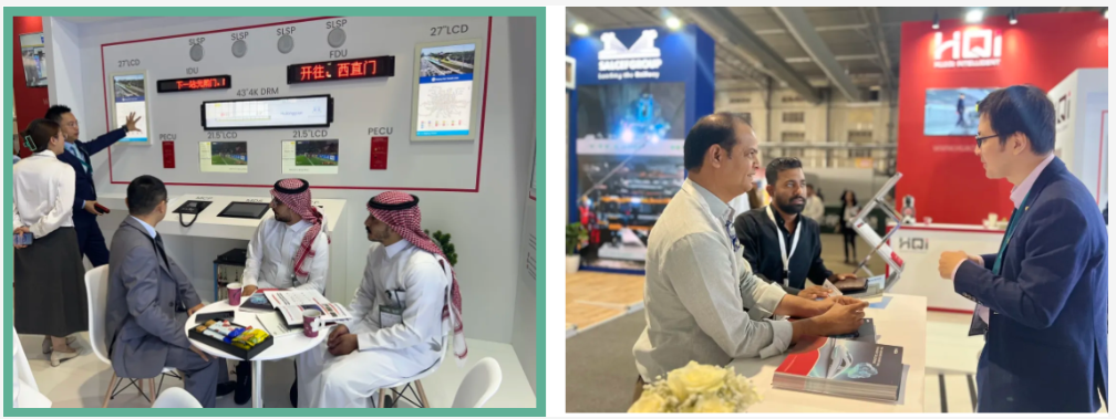 展会首日,聊车城(中国)智能展台便迎来了持续的参观与研讨热潮。包括沙特业主SAR,以及中车、ALSTOM、SIEMENS等多家车辆厂企业的高层代表先后莅临;铁建国际、中土集团、中交港湾等单位专家也陆续到访参观。双方在既有合作项目的优化升级方面交换了意见,并围绕未来新线路规划中的新功能及运维分析等前沿应用,召开了深入且富有建设性的研讨。现场气氛热烈,为后续深化合作奠定了良好基础。