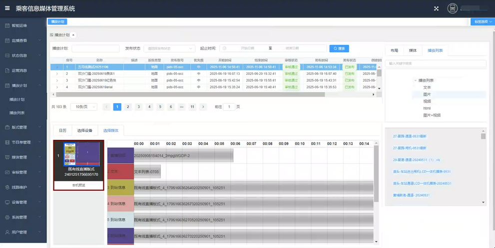 本乘客信息媒体管理软件以“化繁为简”为设计理念,致力于为操作人员给予极致便捷的管理体验。顺利获得直观的图形化界面、灵活的模板编辑和智能的排程策略,它极大地简化了从内容制作到全线发布的复杂流程。无论是紧急信息的实时插播,还是全线设备的集中监控,操作员都能顺利获得此平台轻松完成,有效提升运营响应速度与管理效率。