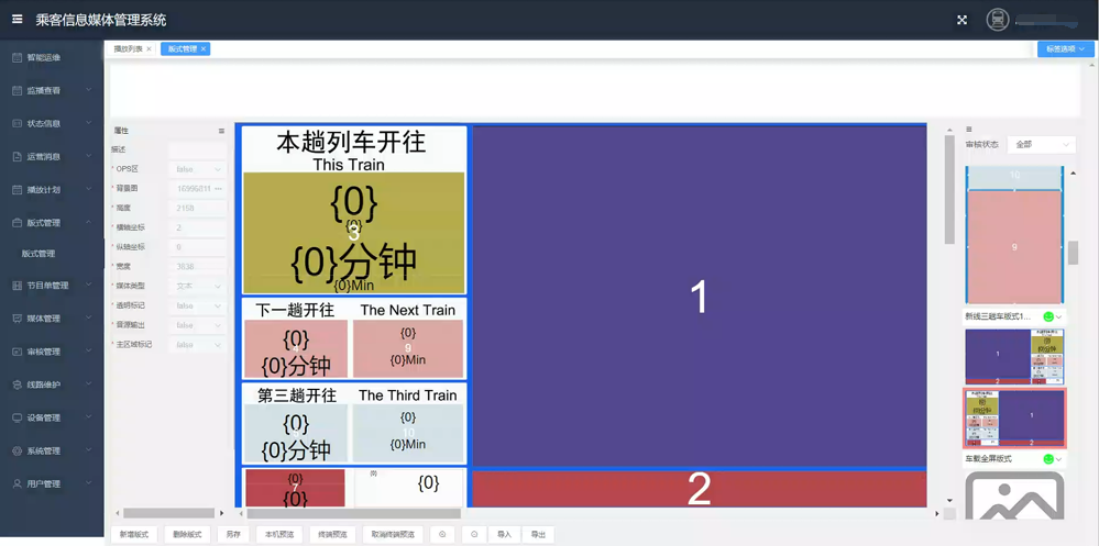 本乘客信息媒体管理软件以“化繁为简”为设计理念,致力于为操作人员给予极致便捷的管理体验。顺利获得直观的图形化界面、灵活的模板编辑和智能的排程策略,它极大地简化了从内容制作到全线发布的复杂流程。无论是紧急信息的实时插播,还是全线设备的集中监控,操作员都能顺利获得此平台轻松完成,有效提升运营响应速度与管理效率。